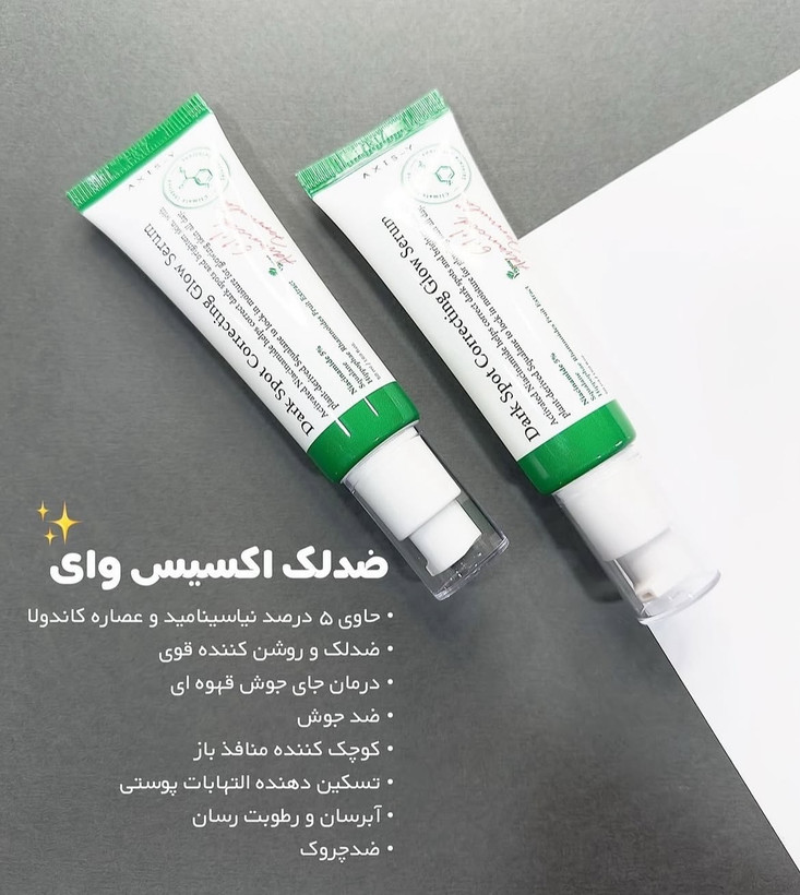 محصولی ک فقط رضایت داشته سرم اکسیس وای ( اورجینال ) بهبود لک و جای جوش روشن کننده و درخشان کننده یکدست کننده بافت و رنگ پوست حفظ رطوبت پوست کاهش التهابات بهبود جوش ها جلوگیری از ایجاد جای جوش بافت سبک و زود جذب مناسب انواع پوست مخصوصا پوست های مستعد آکنه و حساس وگان نحوه استفاده از ضد لک اکسیس وای : صبح و شب مقدار کمی از ضد لک axis y را روی صورت و گردن بزنید. به عنوان ماسک شب نیز قابل استفاده میباشد.