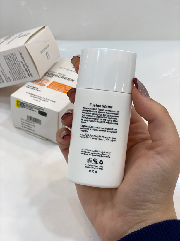 فلوئید ضد آفتاب بیزانس مدل فیوژن واتر حاوی ضد چروک با SPF50 حجم 50 میلی لیتر