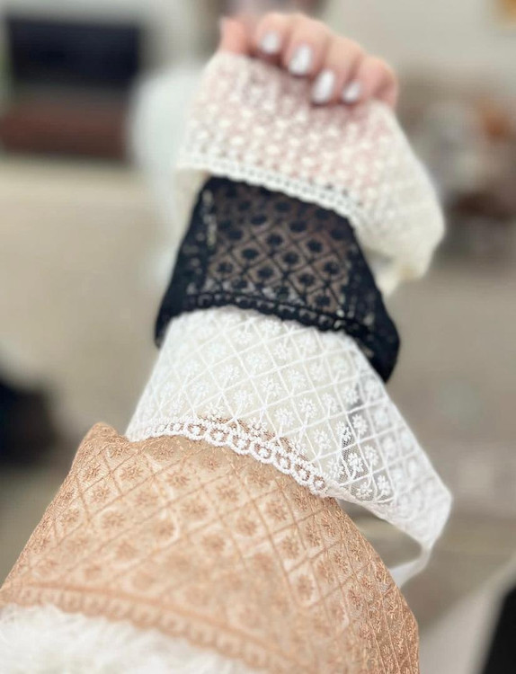 این هدبند زیبا از پارچه گیپور مرغوب و لطیف ساخته شده تا جلوهای زنانه، لطیف و شیک به استایل روزمره یا مجلسیات بده.